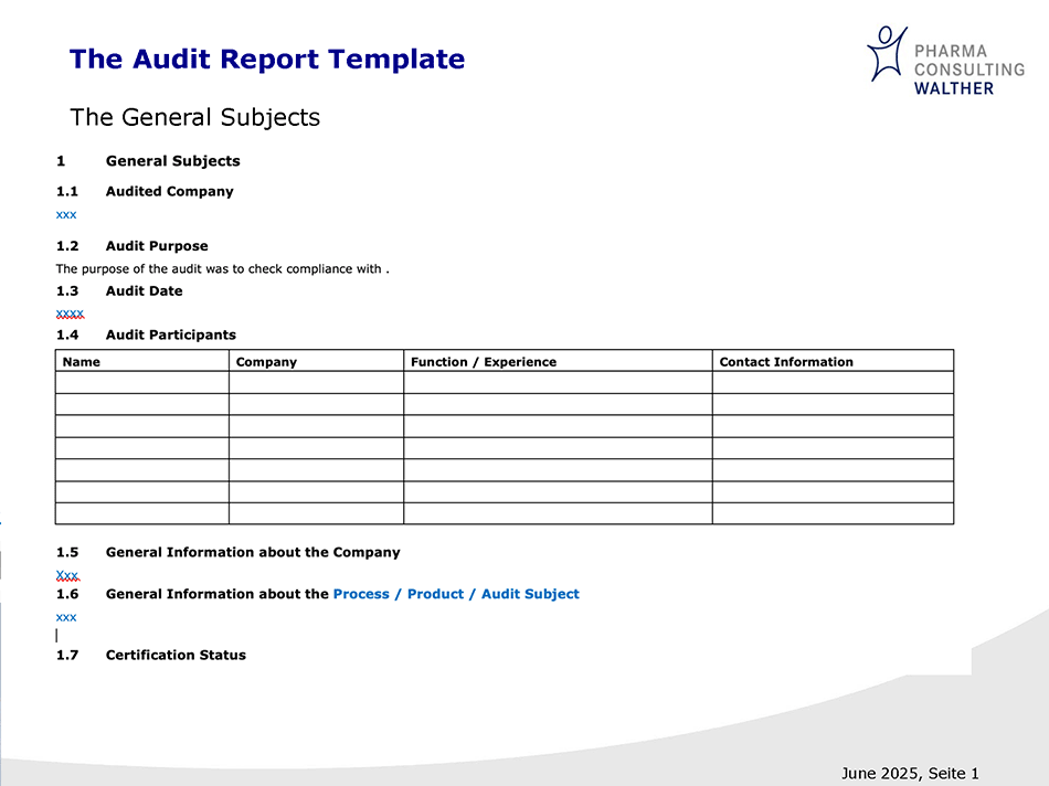 Building on this, Dr Ingrid Walther, a member of the GMP Auditor Association, explored the content of the guideline in greater depth. Dr Walther focused in particular on the report form in the guideline, see Figure 9.