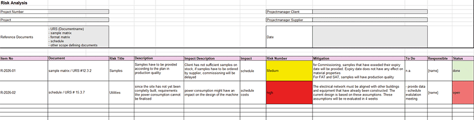The importance of effective risk management was demonstrated in an international project where SAT was delayed by several weeks because packaging materials had been changed at short notice from different suppliers. Only at a late stage did it become apparent that siliconization and friction coefficients did not meet specifications. The customer had not realized that production- grade materials were required. A prioritized risk assessment early in the project would have made this scenario visible and enabled alternative sourcing strategies in time.